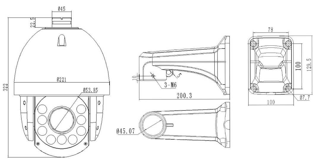 కాన్ఫిగర్, పాన్: 0.1 ° ~ 180 °/s; ప్రీసెట్ వేగం: 180 °/సె |